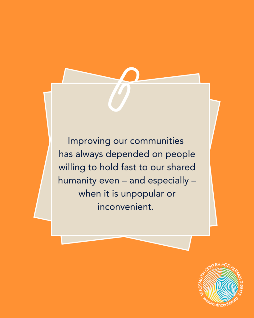Clarity in the Chaos January 12, 2026 As we enter this new year, many of us carry more than resolutions. We hold grief, fear, exhaustion, and uncertainty. Around the world and close to home, people are navigating political upheaval, violence, and deepening divides — often alongside personal struggles that go unseen but shape our lives in profound ways. As crises multiply, the pressure to act quickly can overwhelm our capacity to listen, think, and respond with care. In these moments, the question is not simply what to do, but how to move forward in ways that align with our human rights values. When we uphold these values, we help create a world in which all of us can thrive. Failing to align our actions with our values can have far-reaching consequences, as recent events make painfully clear. In early January, a large-scale U.S. military operation captured Venezuelan President Nicolás Maduro, igniting international concerns about sovereignty. Several days later, an ICE agent fatally shot Renee Nicole Good in Minneapolis, prompting widespread mourning for the tragic loss of human life. And across the globe, millions of people continue to experience horrific human rights violations. These crises show that choices made without attention to underlying values can deepen suffering, erode trust, and perpetuate injustice – both globally and in our local neighborhoods. Yet, when faced with challenges, we often feel compelled to act immediately, attempt to fix what’s broken, and push forward. At the Wassmuth Center, we invite a different response — one that recognizes the weight of this moment while centering our deepest commitments to dignity, diversity, equality, and joy. Rather than rushing toward action, pausing to observe carefully and reflect deeply can support us to choose paths that align with our values. This approach channels our energy into intentional, principled action that strengthens communities and advances human rights. That is why, this month, we are focusing on the Wassmuth Powerful Practice: Align Actions With Values. This practice invites us to slow down, examine our human rights commitments, and respond in ways that honor them, even under pressure. Aligning actions with values is not about indecision or inaction; it is about moving forward with clarity, so that what we do reflects what we believe. This approach has long guided people working for meaningful change. Civil rights leader Ella Baker exemplified this kind of intentional action. During the early sit-in movement, she faced immense pressure to act quickly against segregation. However, Baker paused to ask critical questions about strategy, ethics, and power. She created space for reflection and collective planning, empowering her team to act deliberately and in alignment with their values — even amid urgent, high-pressure circumstances. Baker’s leadership demonstrates that clarity, principled action, and lasting change emerge when we take time to align our actions with our values. Today, with crises pressing from every direction, our instincts still pull us toward speed, certainty, and control. But aligning our actions with our values asks something different of us: to slow down, observe carefully, and choose our next steps deliberately. When we practice this alignment, we act not from fear or impulse, but from purpose, ensuring that even in difficult moments, our actions protect, restore, and advance human rights. We can bring this practice into our personal and political lives through intentional steps: These steps matter most in the everyday moments that test our patience, courage, and integrity. This might look like pausing before responding in a heated conversation, seeking more information before making a decision, or choosing empathy in a disagreement. It may mean noticing when our impulse is to react from fear, anger, or fatigue and instead asking, What action reflects the person I want to be? Practicing intentionality in small, personal decisions cultivates habits of reflection and principled action that ripple outward into our communities and institutions. This kind of intentionality is crucial because the stakes are high. When governments or communities respond to crises without aligning their actions with human rights values the result is widespread harm, diminished public trust, and an even more difficult path to sustainable peace. But when actions align with values, a different future becomes possible. On an individual level, this alignment can strengthen relationships and help us grow closer to becoming our best selves. In times of community trauma, it may involve prioritizing transparency and justice. In international and diplomatic contexts, acting intentionally can mean valuing diplomacy, human dignity, and the long-term well-being of civilians over short-term displays of power. While this approach does not eliminate conflict, it helps ensure that each decision contributes to a more just and joyful world. A new year invites us not just to do more, but to see more and to act with intention. By aligning our actions with our values — in our personal lives and across our communities — we can navigate 2026 with clarity and bring our deepest human rights commitments to life.