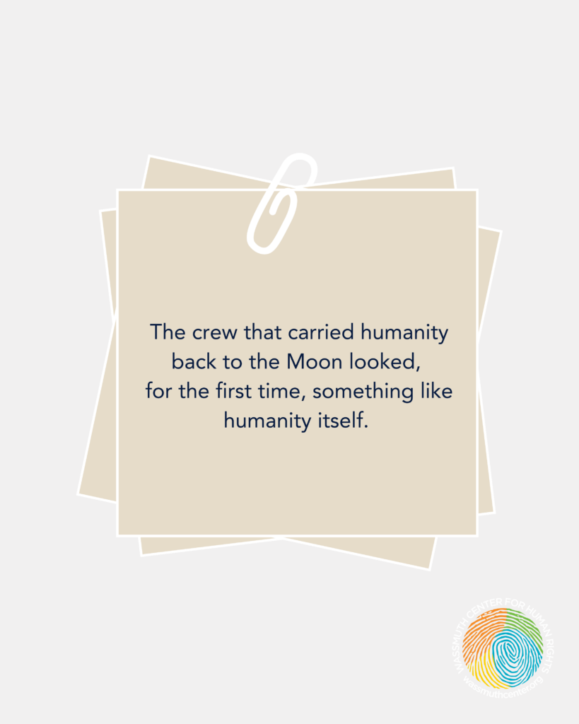Expanding the Crew April 20, 2026 When the Artemis II crew arrived at Kennedy Space Center before launch, they introduced the fifth member of the mission: a small plush Moon wearing Earth as a baseball cap, designed by eight-year-old Lucas Ye. Inspired by the Earthrise photograph taken during Apollo 8, Lucas named his design Rise. Inside the plush, on a tiny SD card, were 5.6 million names submitted by people who wanted some part of themselves to make the journey, too. It was a fitting beginning. Because what made Artemis II historic wasn’t only where it went, though the four astronauts traveled farther from Earth than any human beings before them. What made it historic was who went. The last time humans traveled to the Moon was December 1972. Every astronaut who had ever made that journey — each person who had seen Earth from lunar distance — was white, male, and American. On April 1, 2026, that changed. Victor Glover became the first Black astronaut to fly to the Moon. Christina Koch became the first woman. Jeremy Hansen became the first person from outside the United States. The crew that carried humanity back to the Moon looked, for the first time, something like humanity itself. This matters beyond symbolism. Who is trusted with the mission — whose perspective is considered essential, whose presence is treated as belonging — reflects what a society believes about who counts. For decades, the answer to who explores deep space was narrow, not because of ability, but because of barriers built by discrimination and exclusion. Glover, Koch, and Hansen didn’t arrive on the crew by accident. They arrived because people before them fought to open doors that had been closed: in classrooms, in military flight programs, in the astronaut corps itself, and in the international agreements that made a Canadian seat on an American spacecraft possible. Each of those fights is a human rights story. And each of those stories was, until recently, one NASA was willing to tell. When the crew was announced in 2023, NASA celebrated the milestones openly: the first woman, the first person of color assigned to a lunar mission. By the time of the launch, that language had been removed from the agency’s website and public communications, following an executive order directing federal agencies to dismantle diversity programs. The firsts still happened. The crew still flew. But the institution stopped saying it out loud. Whose stories get told and whose get erased matters. It is never a neutral choice. It is one of the ways dignity is either honored or withheld. But the public saw what the government would not name. In a season when the news has felt relentless and heavy, millions of people stopped what they were doing and watched. It was the first lunar mission many of us had ever witnessed, and the first broadcast in high-definition video. The crew witnessed a total solar eclipse from behind the Moon, a sight no human eyes had ever seen. And when they looked back at Earth — blue, green, brown, swirled in white clouds, luminous against the dark — they struggled to find words for what they were seeing. During the flyby, Koch radioed Houston: “We hear you can look up and see the moon right now. We see you, too.” Teachers gathered their students around monitors. Children followed the progress and declared their own future plans to become astronauts. Many could see themselves in the crew. Each of the four astronauts was once one of those children, shaped by communities that encouraged them to be curious, to reach beyond what seemed possible. Now their work will inform the next mission, which will inform the one after that. This is how progress moves: not in a single leap, but through sustained, iterative effort passed from one set of hands to the next. This is also the work of the Wassmuth Center. Every April, our Wassmuth Youth Leaders and Human Rights Education Fellows gather to share what they have built over the year — classroom initiatives, community projects, new strategies for interrupting injustice. We pause to celebrate what they have learned and who they have become, and then they pass the work forward. New cohorts of students and teachers arrive. The questions evolve. The mission continues, shaped by everyone who came before and everyone who will follow. And each year, the crew expands. More voices. More perspectives. More people who see themselves as belonging to the work. The day the astronauts splashed down in the Pacific, Commander Reid Wiseman was supposed to leave Rise behind in the capsule for later retrieval. He didn’t. He tucked the little plush into a dry bag and carried it out with him. An eight-year-old’s vision of Earth and Moon together, designed to represent all of us, was too important to leave behind.